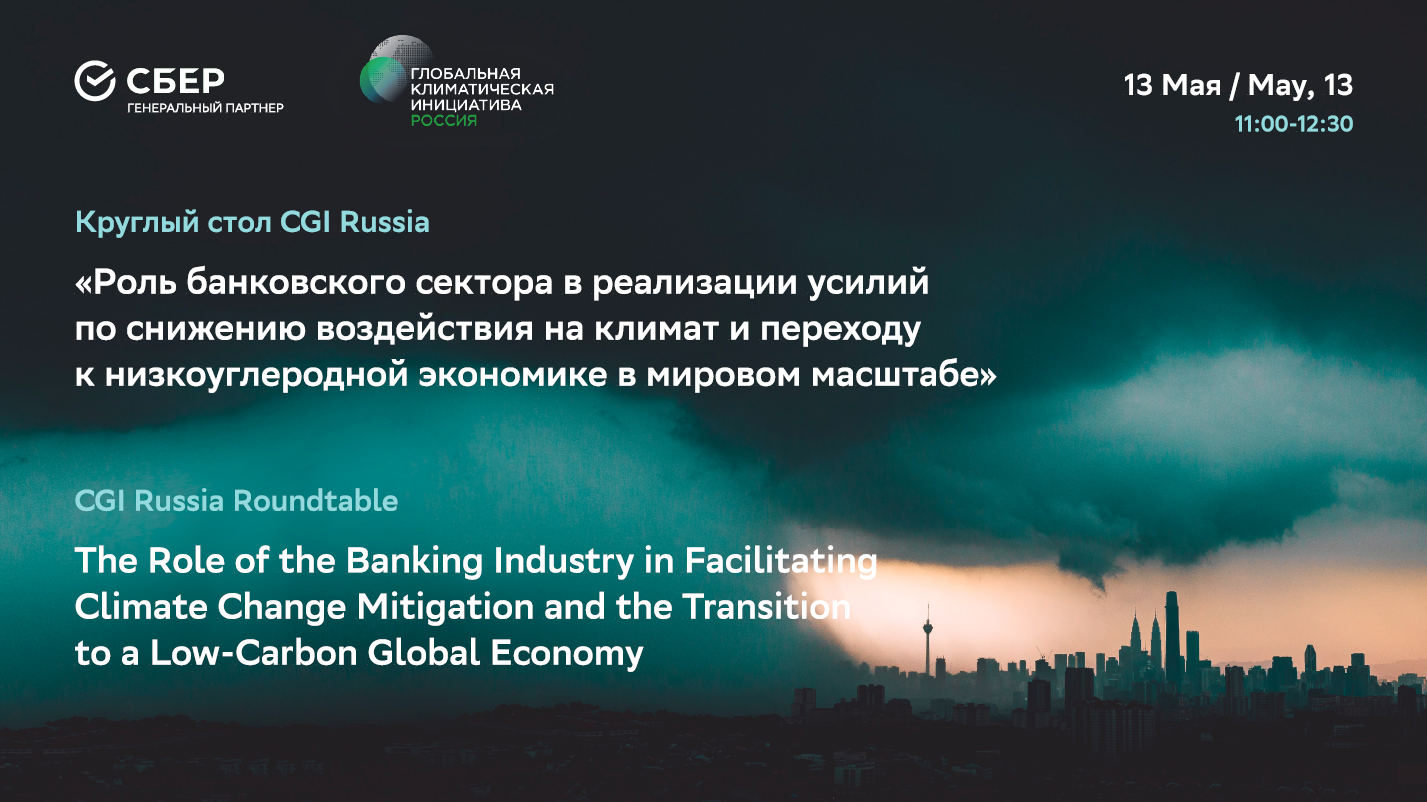 13 мая 2021 Глобальная климатическая инициатива России (CGI Russia) совместно с генеральным партнером ПАО Сбербанк провела круглый стол для членов советов директоров и руководителей высшего звена на тему «Роль банковского сектора в реализации усилий по снижению воздействия на климат и переходу к низкоуглеродной экономике в мировом масштабе».