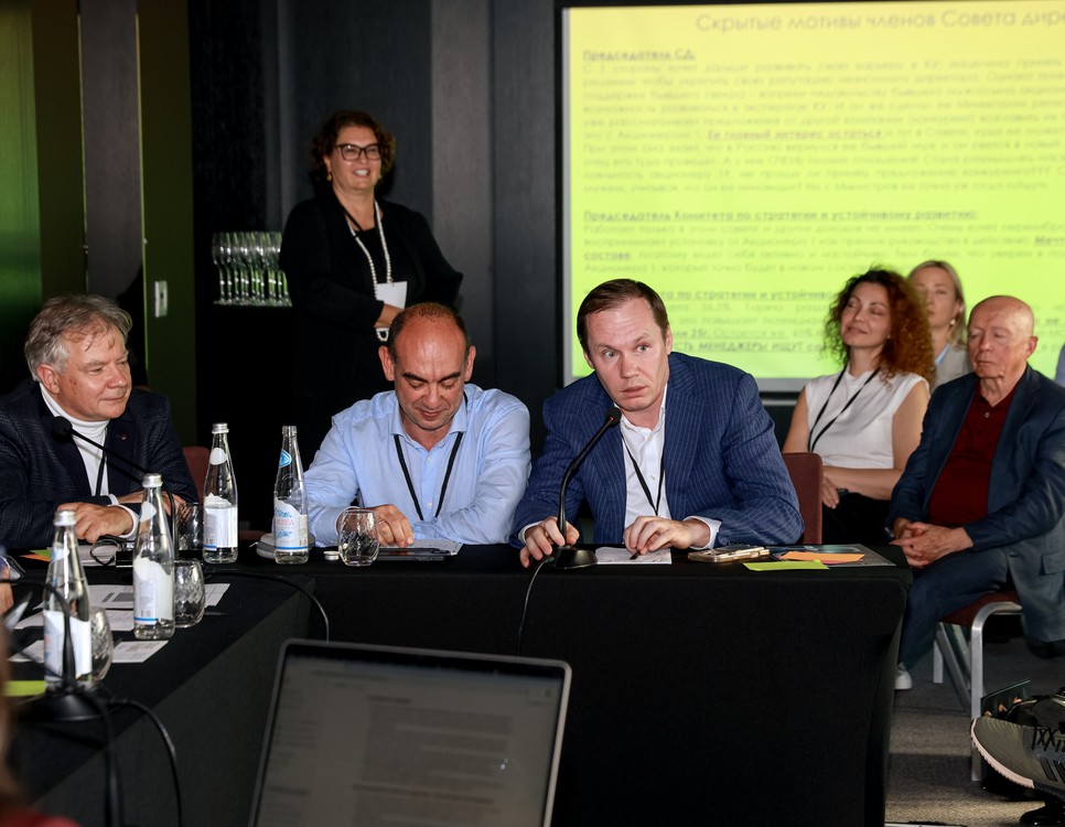 Мероприятие, прошедшее в формате живого и динамичного моделирования заседания Совета директоров, собрало владельцев бизнеса и членов советов директоров для глубокого погружения в одну из самых острых тем корпоративного управления — работу в условиях конфликта интересов. Участники встречи стали свидетелями того, как эмоциональный фон и столкновение различных позиций могут влиять на процесс принятия решений. Ключевой вывод игры прекрасно дополнили практические кейсы, разобранные экспертами: даже в самой сложной ситуации легитимность и качество решений можно обеспечить за счет четкой процедуры и смысловых рамок обсуждения. Так, было наглядно показано, как работают инструменты, которые можно сразу применить в реальной работе: фиксация «особого мнения» при воздержании, тайм-менеджмент, пакетное рассмотрение вопросов и необходимость комплексного взгляда на финансы, где важен не только показатель прибыли, но и денежный поток.